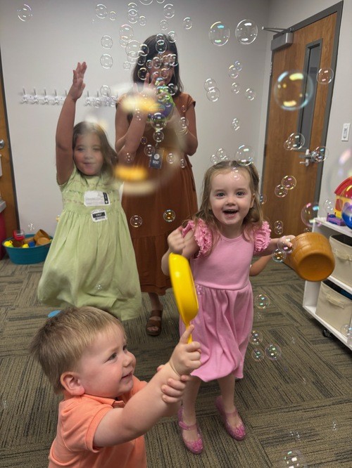 Our Nursery program offers 0-4 year olds a worship experience of their own. The little ones will have free play, songs, a Bible lesson, and age appropriate response time led by loving and attentive leaders. Upon arrival, please use one of the stations in the lobby or hallway to get your little one checked in. The child will receive a sticker with their name and specific number on it. The same number will be on a smaller sticker given to their parent/guardian, at pick up please provide the parent sticker. We ask that parents also provide a mobile phone number they can be reached at during the service if an issue arrises. Parents are welcome to pick up their children before communion or after the conclusion of the service. Our team loves to care for your little ones and give them opportunities to experience God on their level while you are worshiping in the sanctuary.